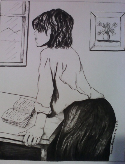 ![]() Donna che legge, 2016, china con pennello, ?x? |