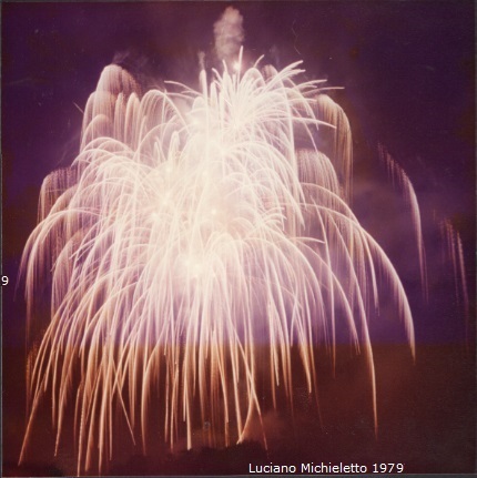 ![]() Isola Comacina, Como, 1979 Il 24 giugno del 1979, insieme ad un amico abbiamo deciso di fare un giro al lago di Como. Quando siamo arrivati in un paesino di nome Tremezzina lo abbiamo trovato affollato e per curiosità ci siamo fermati. All'improvviso i fuochi d'artificio. Velocemente ho appoggiato la mia reflex su un piano stabile, ho impostato tempi lunghi di esposizione, pigiato sull'autofocus e ho atteso. Il risultato è quello che vedete. L'insieme dei fuochi d'artificio impressi sulla pellicola dovuti alla lunga esposizione hanno creato un 'salice piangente' di luce. |